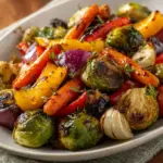 Now, let’s get those veggies ready! Start by washing your Brussels sprouts, carrots, bell peppers, and red onion under cool water. Pat them dry with a clean towel. Next, halve the Brussels sprouts, slice the carrots into rounds, chop the bell peppers into bite-sized pieces, and slice the red onion. The goal is to have uniform pieces so they cook evenly. This preparation is key to making your Balsamic Glazed Roasted Vegetables a hit!