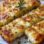 Delicious and cheesy keto cauliflower garlic breadsticks that are crispy on the outside and creamy on the inside, perfect for satisfying carb cravings.