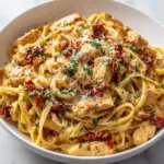 A delicious and creamy pasta dish featuring sun-dried tomatoes and chicken, perfect for a comforting meal.