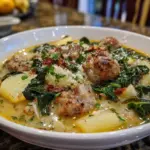 A hearty and flavorful Italian Sausage Soup inspired by the popular Zuppa Toscana, featuring savory sausage, fresh vegetables, and creamy broth.