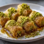 Making Kataifi Rolls with Pistachio is more than just a cooking task; it’s a delightful journey that fills your kitchen with warmth and joy. Each roll is a little bundle of happiness, perfect for sharing with family or friends. The crispy texture combined with the sweet, nutty filling creates a symphony of flavors that dances on your palate. Whether it’s a special occasion or a simple weeknight treat, these rolls are sure to bring smiles all around. So, roll up your sleeves and dive into this culinary adventure—you won’t regret it!