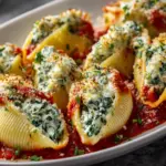 Delicious pasta shells filled with a creamy spinach and ricotta mixture, baked to perfection.