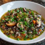 A creamy and hearty wild rice mushroom soup that combines the earthy flavors of mushrooms with the nutty taste of wild rice, perfect for a comforting meal.